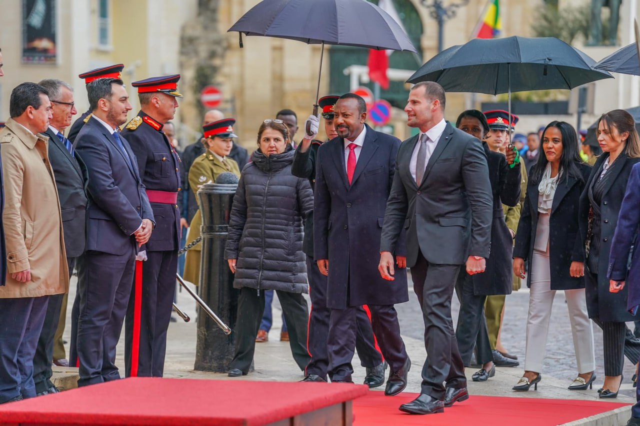 وفور وصول رئيس الوزراء أبي أحمد والسيدة الأولى ، زناش تاياتشو والوفد المرافق له مالطا، صباح اليوم الثلاثاء لإجراء محادثات مع نظيره أبيلا بدأت مراسم الاستقبال الرسمية، حيث تم عزف السلام الوطني للبلدين ثم استعرض الزعيمان حرس الشرف .
