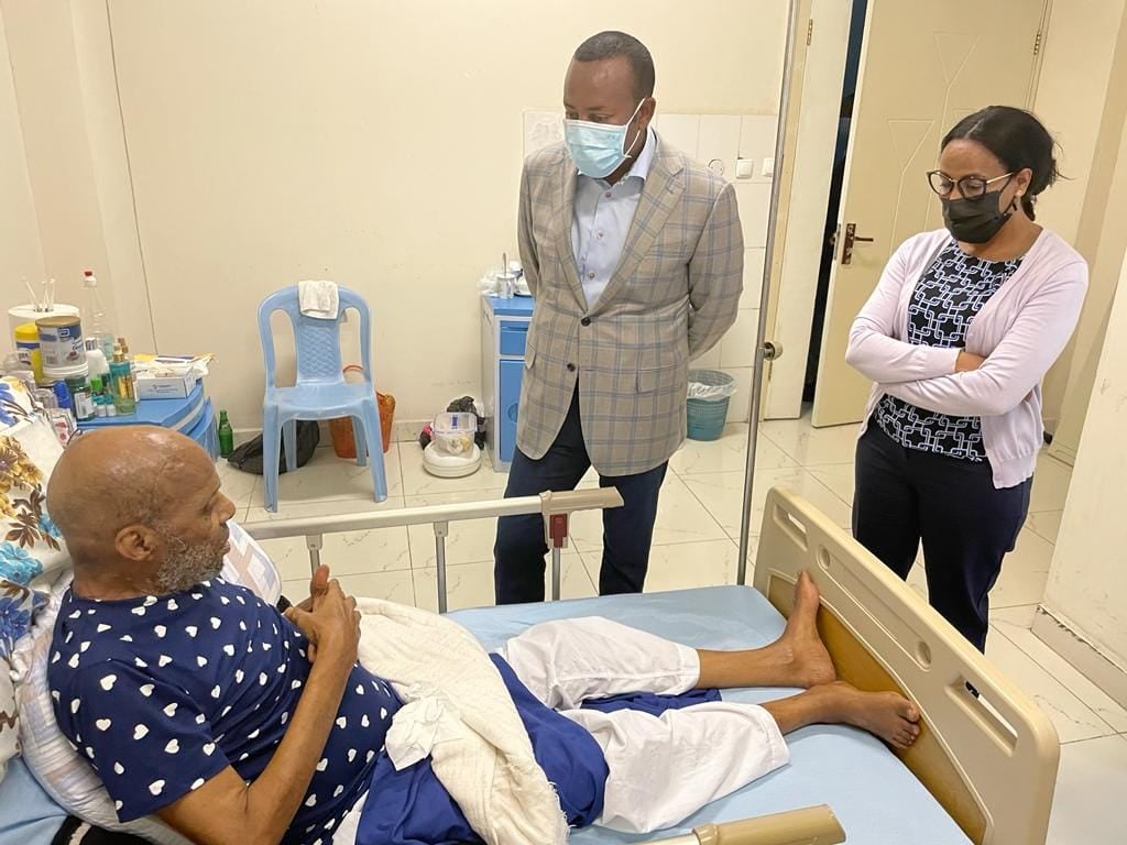 رئيس الوزراء أبي يزور الفنان المخضرم علي برّا في مستشفى أداما العام