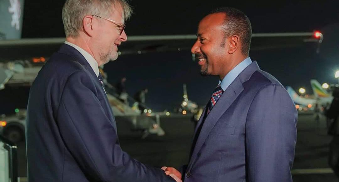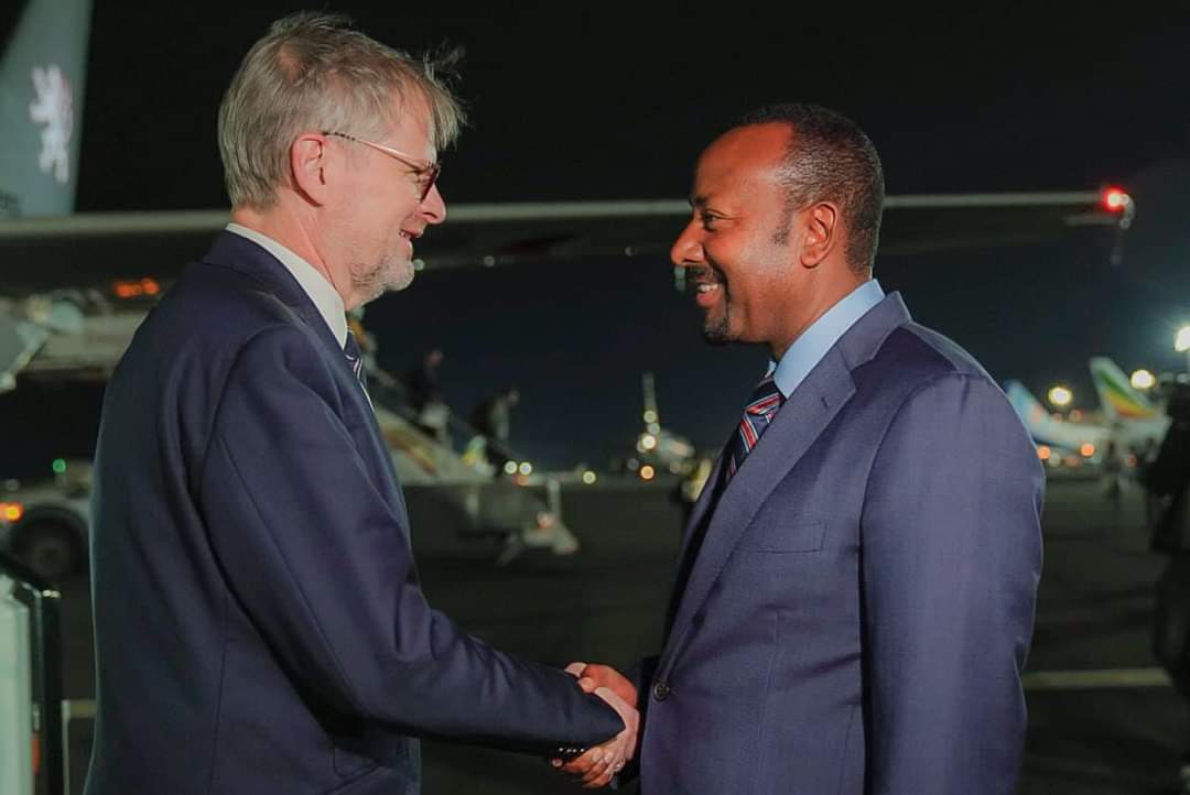 وكان في إستقباله لدى وصوله مطار بولي الدولي، رئيس الوزراء أبي أحمد، ومسؤولين رفيعي المستوى في الحكومة الإثيوبية.