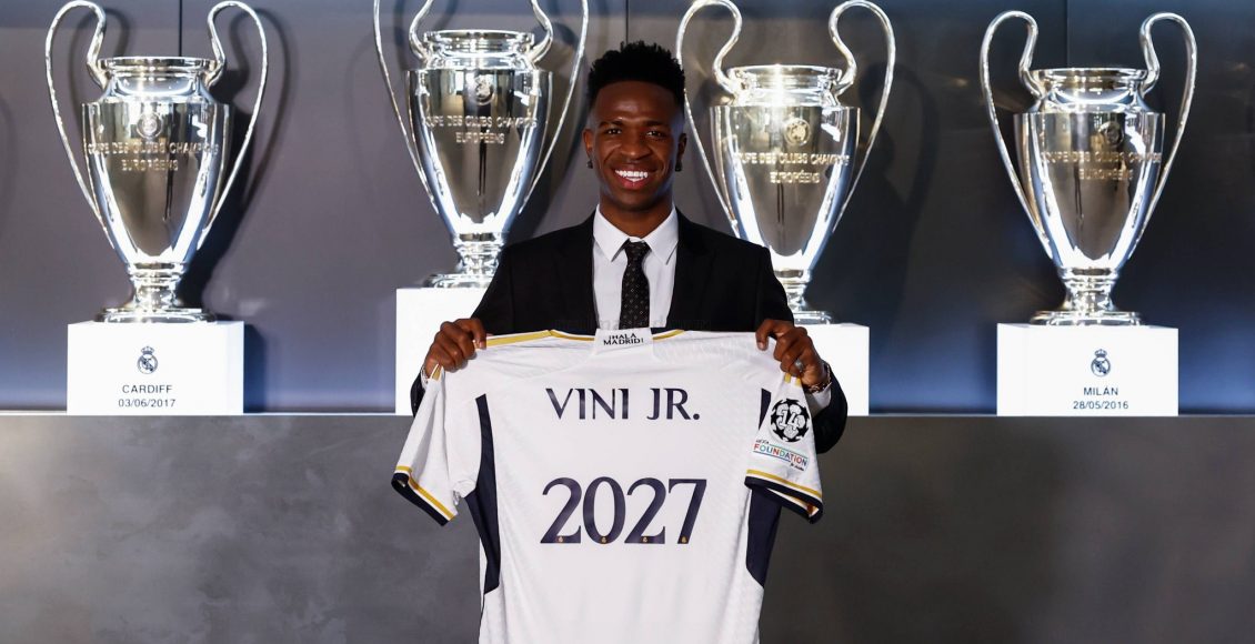 وذكر نادى ريال مدريد فى بيانه الرسمى أنه تم التوصل لاتفاق بشأن تمديد عقد اللاعب البرازيلي فينيسيوس جونيور الذي يظل مرتبطًا بالنادي الإسباني حتى 30 يونيو 2027.