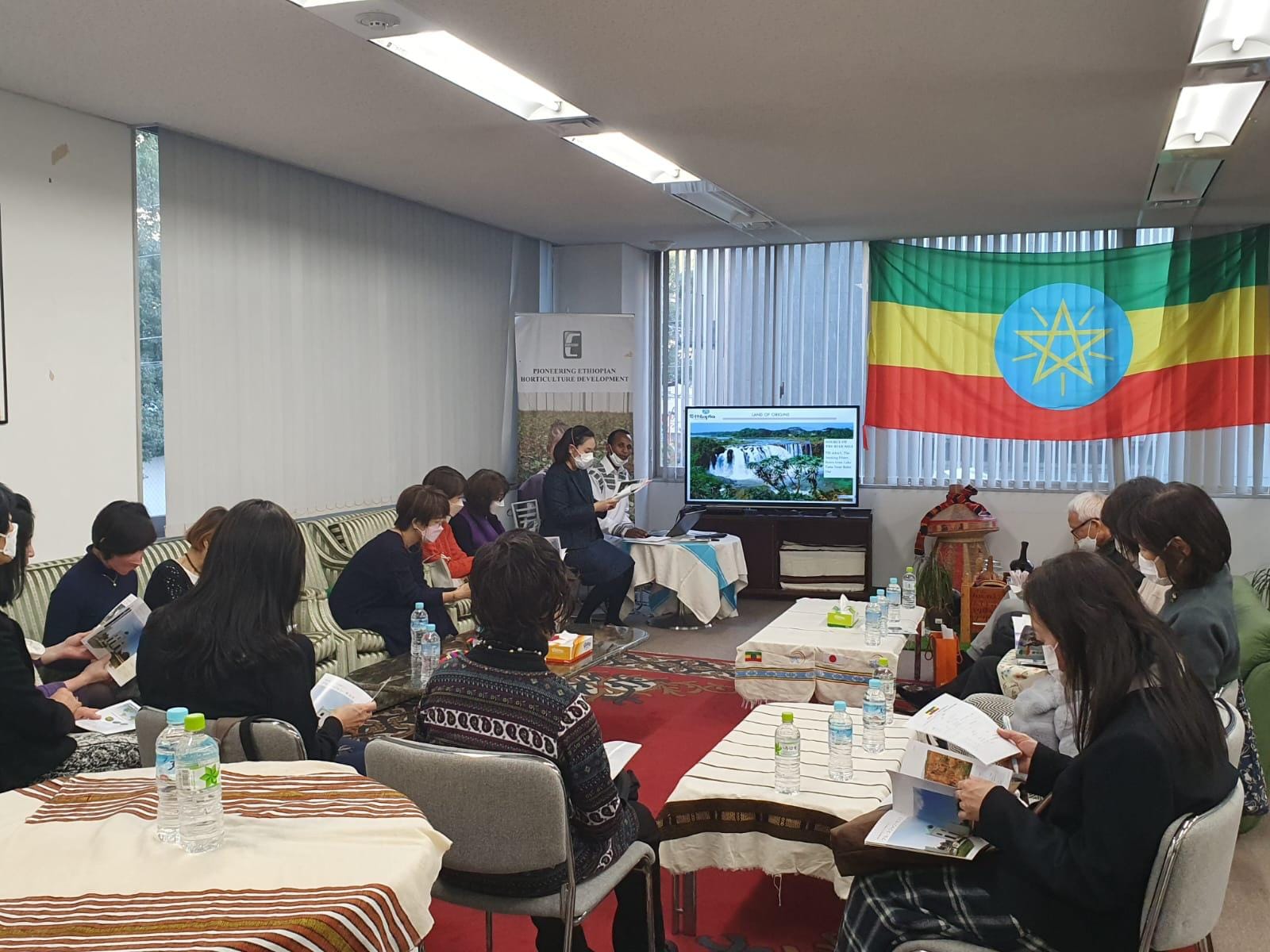 في كلمته الترحيبية ، سلط يوهانس فانتا ولدغيورغيس ، القائم بالأعمال بالسفارة، الضوء على أن إثيوبيا هي مهد البشر وأصل القهوة، مشيراً إلى العلاقات الدبلوماسية والشعبية الطويلة بين إثيوبيا واليابان.