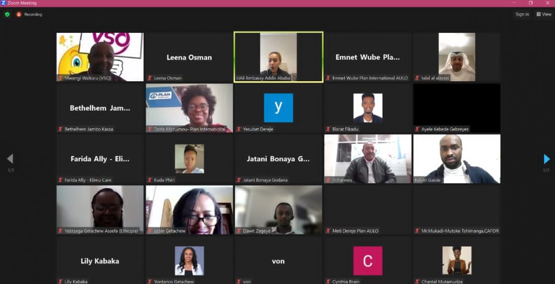 نظمت سفارة دولة الإمارات العربية المتحدة لدى اثيوبيا، الخميس، بالتعاون مع مكتب “بلان” الدولي لدى الاتحاد الأفريقي، ومنظمات أخرى معنية بالأطفال، جلسة حوارية افتراضية، بعنوان” تمكين الشباب والأطفال في تحقيق تطلعات التنمية المستدامة”.