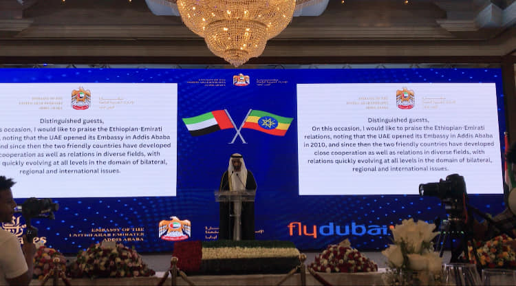 وأشار السفير غبيهو غانغا، – في كلمته- إلى أن زيارة صاحب السمو الشيخ محمد بن زايد آل نهيان رئيس دولة الإمارات الإخيرة إلى إثيوبيا، شكلت  علامة فارقة في العلاقات الثنائية بين البلدين الشقيقين. مشيرا إلى الاتفاقيات ومذكرات التفاهم الموقعة خلال الزيارة، تعكس التطلعات المشتركة للتقدم والتعاون المتبادل والشراكة.
