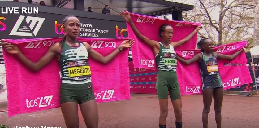 وفي سباق السيدات ، فقد فازت مغرتو أليمو بسباق الماراثون الذي أقيم في لندن أمس الأحد على المركز الثاني ، بمقدار 2:18:37س.