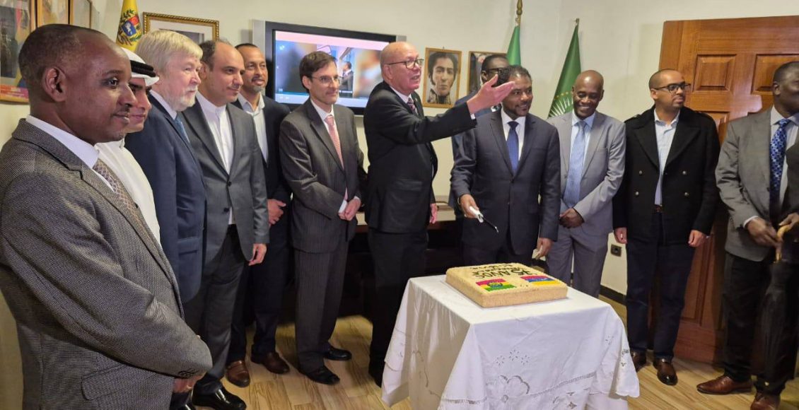 وفي كلمة ألقاها بالمناسبة، عبّر سعادة السفير إيدي خوسيه كوردوفا ، سفير فنزويلا لدى إثيوبيا والممثل الدائم لدى الاتحاد الأفريقي، عن اعتزاز بلاده بهذه المناسبة، ناقلاً تحيات وتهاني الرئيس نيكولاس مادورو ووزير الخارجية إيفان خيل إلى الحكومة والشعب الإثيوبي.