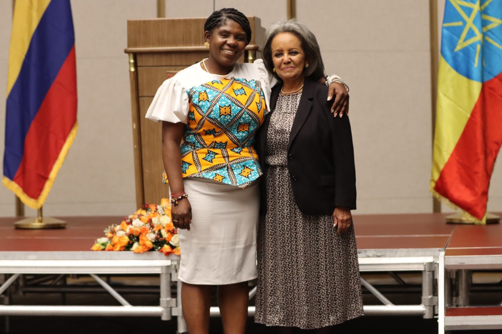 التقت رئيسة جمهورية إثيوبيا، ساهلورق زودي، اليوم في مكتبها، بنائبة رئيس جمهورية كولومبيا، فرانسيا ماركيز، التي تقوم حاليا بزيارة رسمية لإثيوبيا.