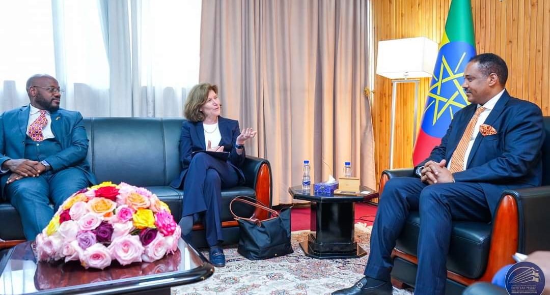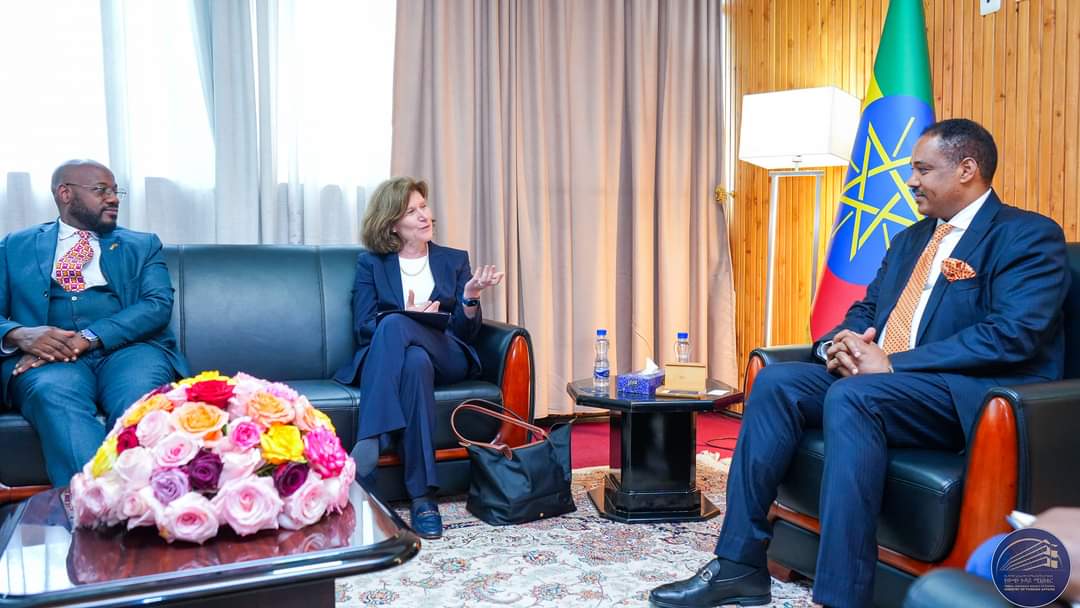 جاء ذلك خلال لقائها بوزير الدولة للشؤون الخارجية، السفير مسغانو أرغا، في أديس أبابا، حيث بحث الطرفان العلاقات الثنائية والقضايا ذات الاهتمام المشترك، فضلا عن تبادل وجهات النظر حول تنفيذ إتفاقية السلام ومساعدات الحكومة الفيدرالية للمتأثرين بالنزاعات الأخيرة.