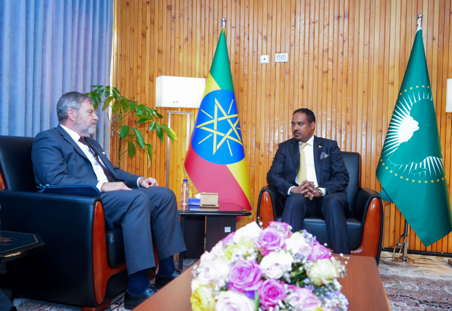وخلال اللقاء، تبادل الجانبان وجهات النظر حول مجموعة من القضايا الثنائية والإقليمية والدولية ذات الاهتمام المشترك، ولا سيما قضايا السلام والأمن في منطقة القرن الأفريقي.