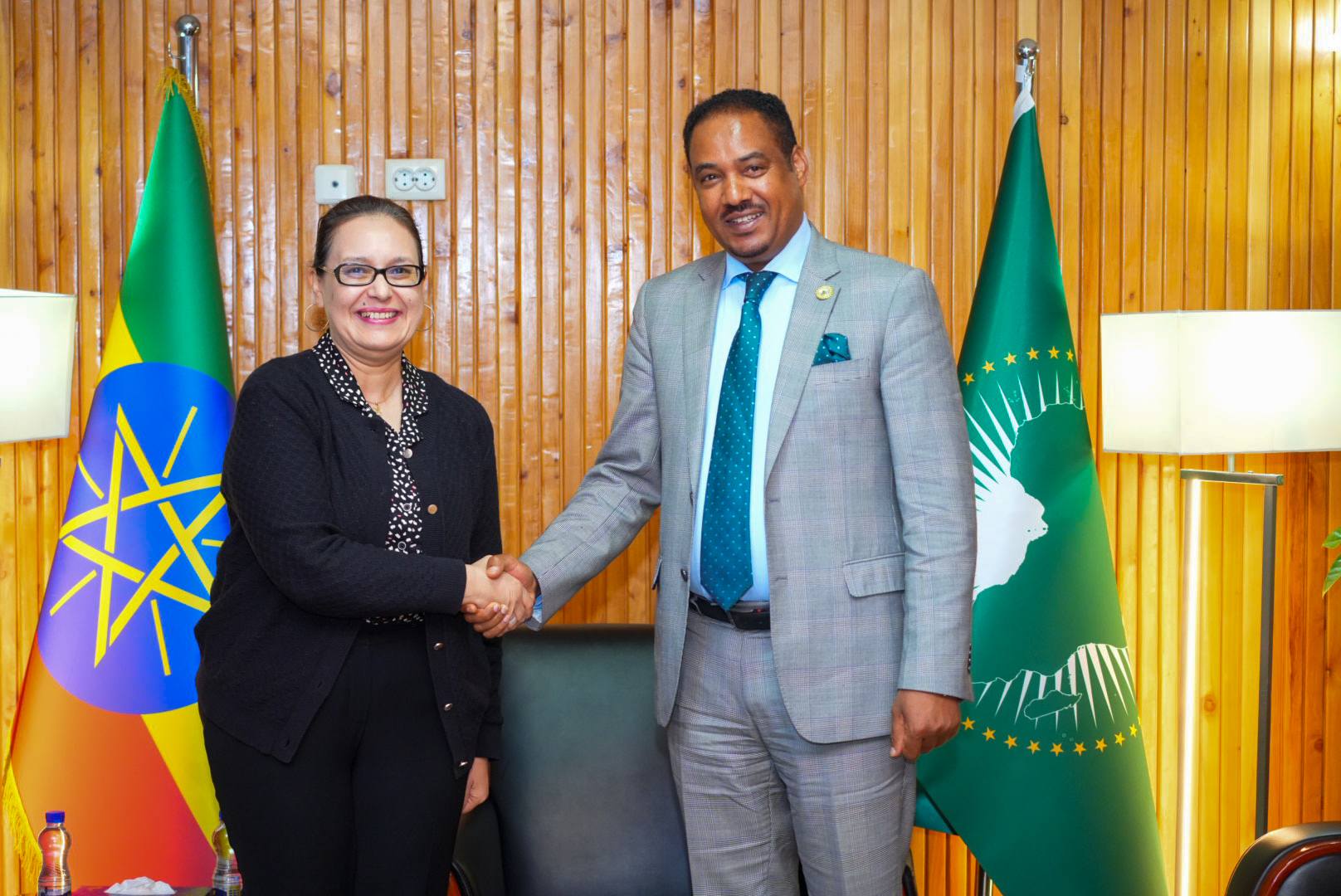 استقبل وزير الدولة للشؤون الخارجية، السفير مسغانو أرغا، اليوم في مكتبه، سفيرة المملكة المغربية لدى إثيوبيا، نزهة علوي محمدي.
