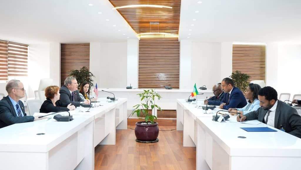 التقى وزير الدولة للشؤون الخارجية بإثيوبيا، السفير مسغانو أرغا، مع المبعوث الأمريكي الخاص للقرن الأفريقي، السفير مايك هامر، والقائمة بالأعمال الأمريكية لدى إثيوبيا، السفيرة تريسي آن جاكوبسون.