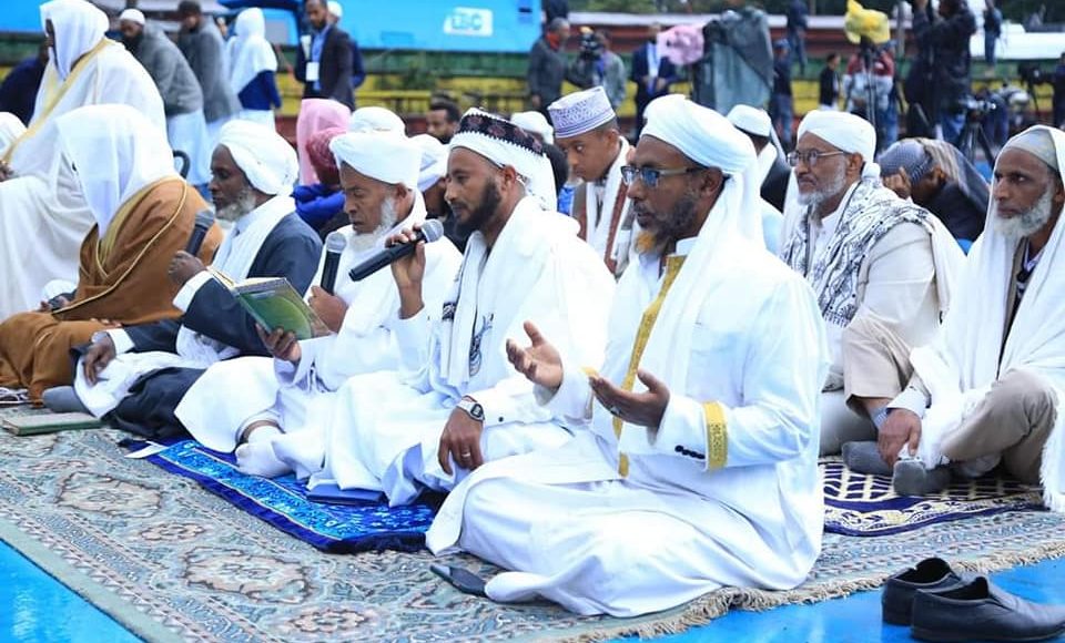 وبينما امتلأ ملعب أديس أبابا الصغير، امتدت صفوف المسلمين في الطرق المؤدية إليه وسط مشاركة رسمية حضرها ، المفتي حاج عمر ادريس وحاج ابراهيم توفا وعدد من أئمة وعلماء إثيوبيا.