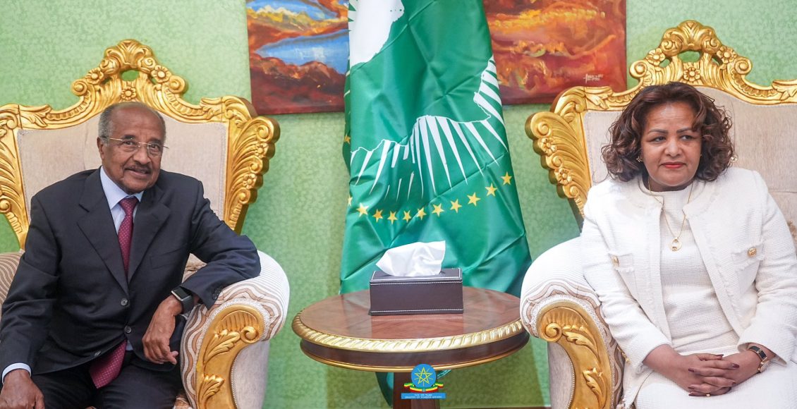 وكان في استقبال وزير الخارجية الإريتري وزيرة الدولة للشؤون الخارجية الإثيوبية، السفيرة برتوكان أيانو.