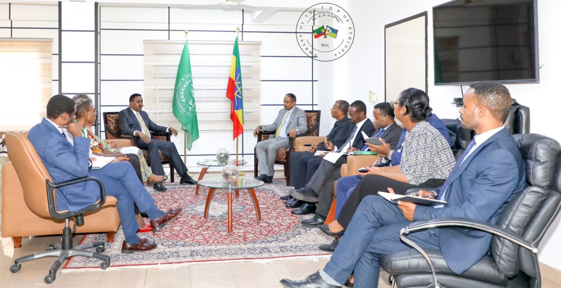 بحث وزير الدولة للشؤون الخارجية في إثيوبيا، السفير مسغانو أرغا ، مع السكرتير التنفيذي للهيئة الحكومية المعنية بالتنمية (ايغاد) ، ورقنه غبيهو القضايا الثنائية والإقليمية.