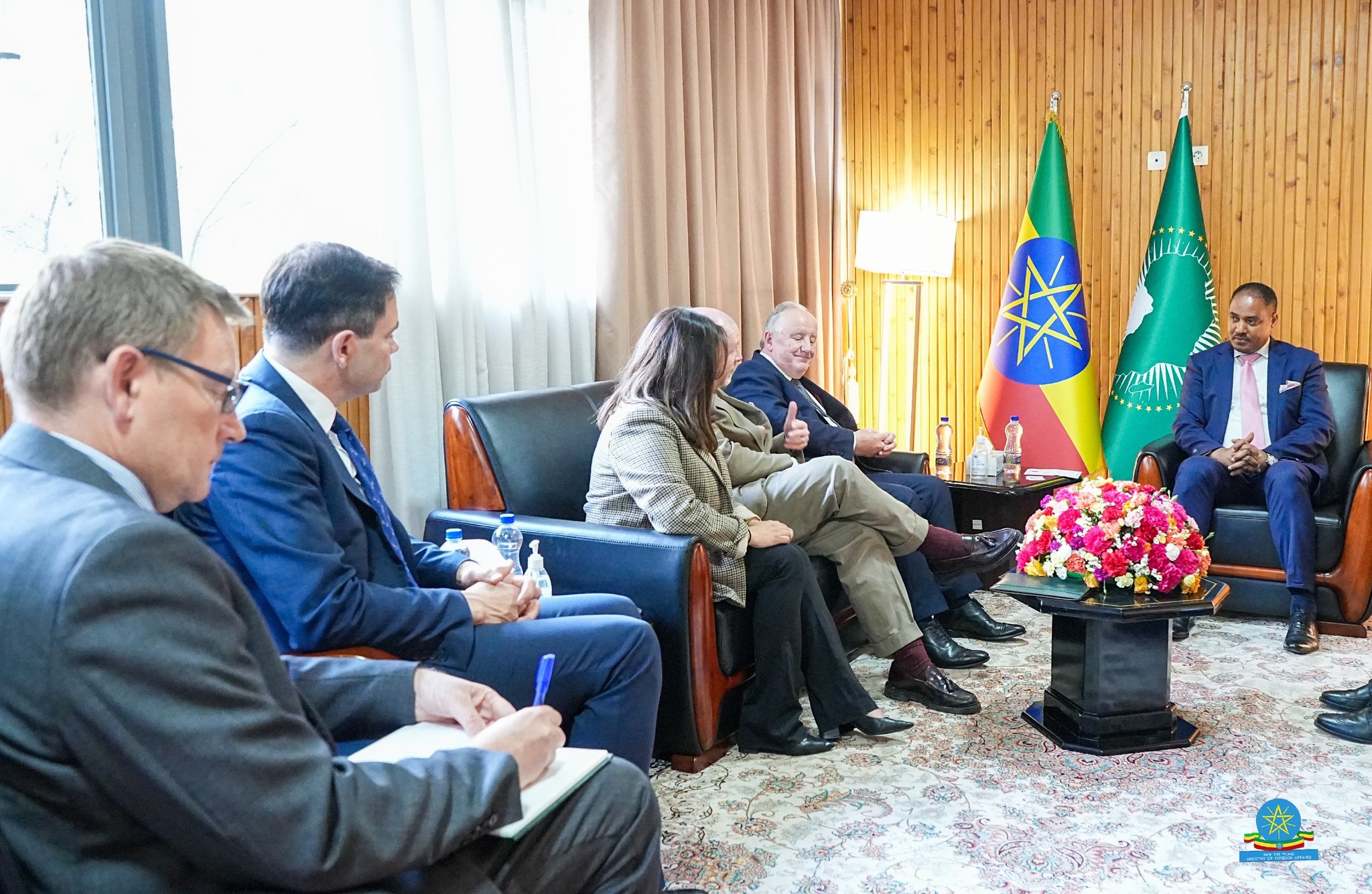 استقبل وزير الدولة للشؤون الخارجية الإثيوبي، السفير مسغانو أرغا، اليوم الثلاثاء، بمقر الوزارة، وفدا برلمانيا بريطانيا برئاسة لورانس روبرتسون، يقوم بزيارة عمل لإثيوبيا حالياً ، إذ سيعقد الوفد سلسة لقاءات مع مسؤولين بهدف إنشاء حوار بناء ودائم خاصة بين البرلمانيين من إثيوبيا وبريطانيا.