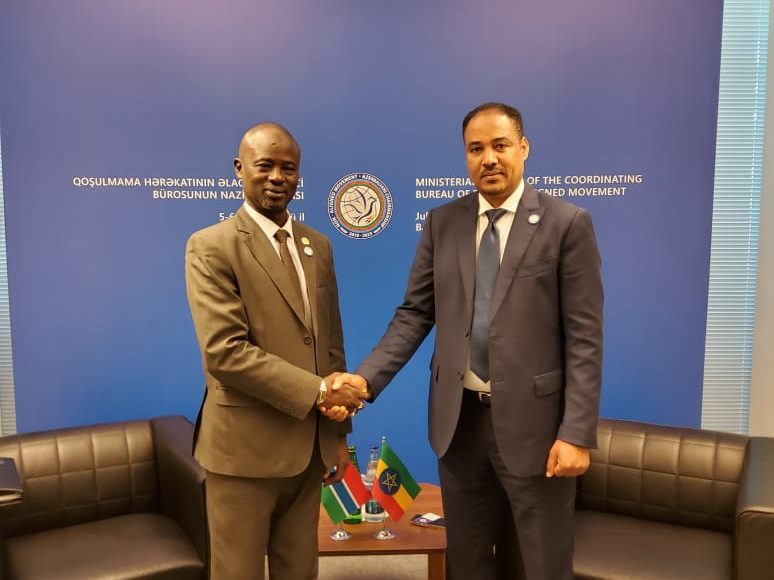 اجتمع وزير الدولة للشؤون الخارجية الإثيوبي، السفير مسغانو أرغا، اليوم الخميس مع وزير دولة للشؤون الخارجية لجمهورية المالديف السيد أحمد خليل، والسكرتير الدائم في وزارة الخارجية والتعاون الدولي والغامبيين في الخارج بجمهورية غامبيا، وحبيب جارا، وذلك على هامش الاجتماع الوزاري لحركة عدم الانحياز المنعقد في العاصمة الأذرية باكو.