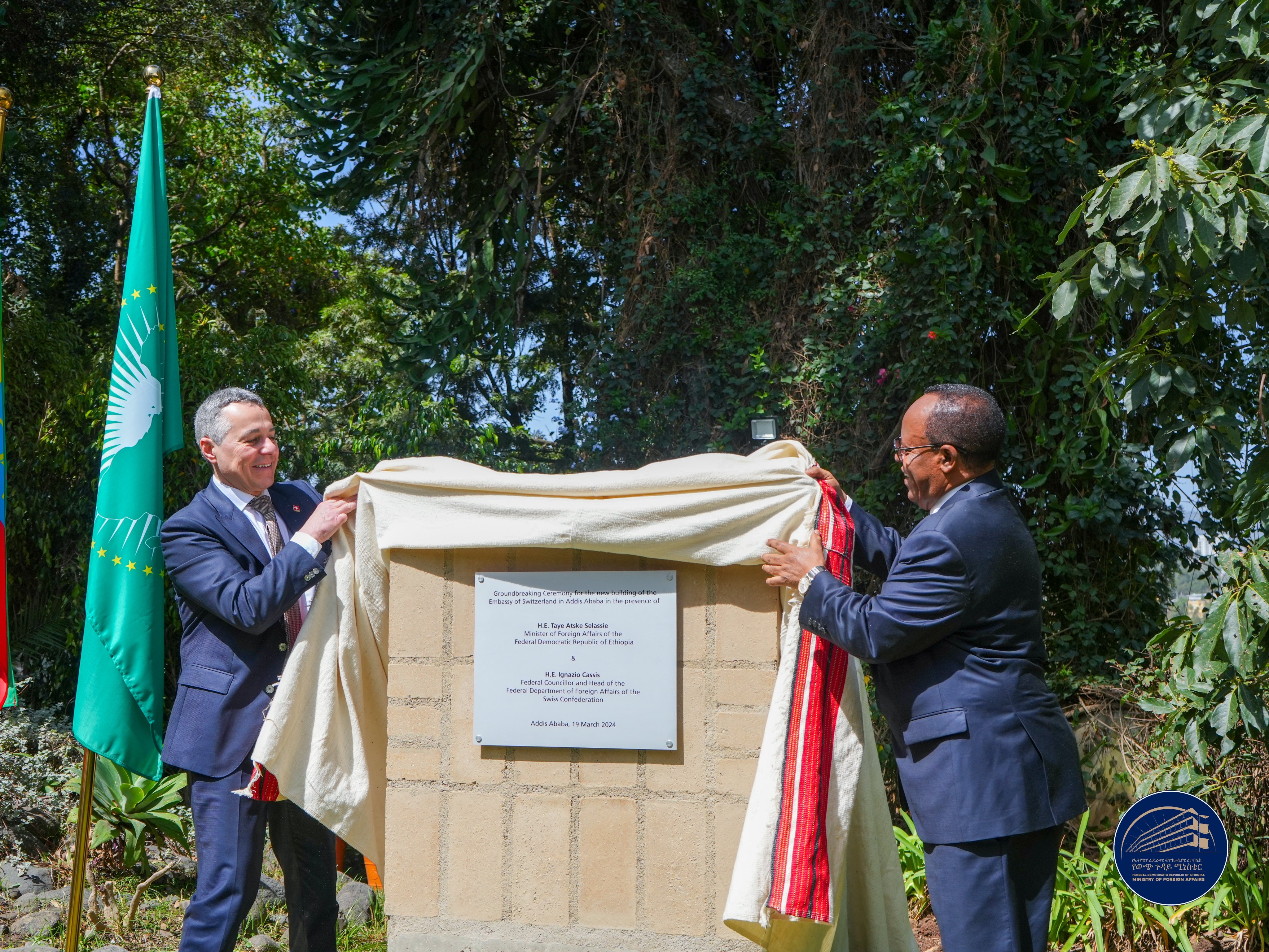 قام وزير الخارجية السويسري إينياتسيو كاسيس، ونظيره الإثيوبي، السفير تايي أتسقى سيلاسي، بوضع حجر الأساس لبناء مبنى السفارة السويسرية الجديد بأديس أبابا.