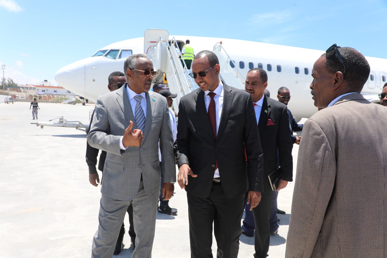 وكان في استقبال الوفد الإثيوبي لدى وصوله في مطار مقديشو، وزير الخارجية والتعاون الدولي بجمهورية الصومال الفيدرالية، أبشر عمر جامع هورسي.