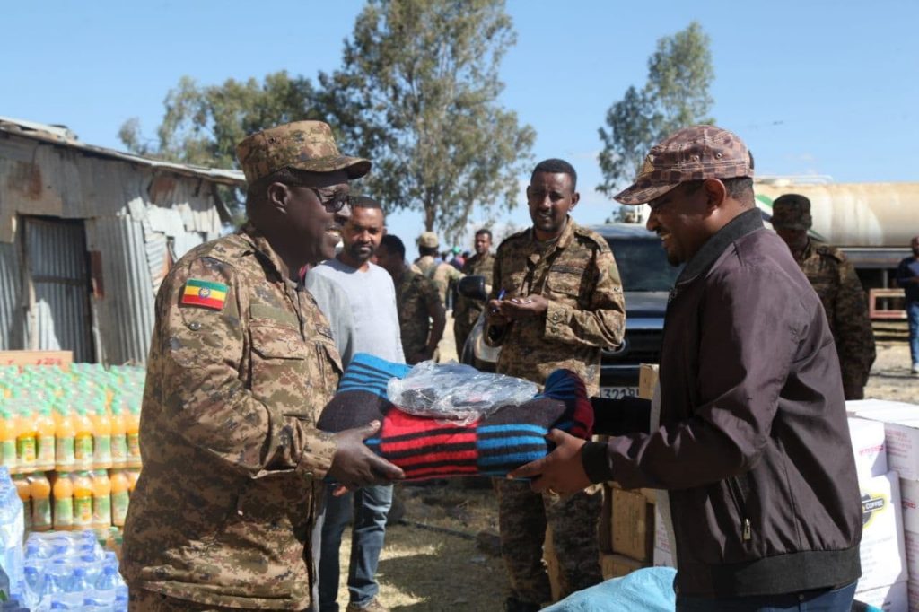 አዲስ አበባ ፣ ህዳር 20 ፣ 2014 (ኤፍ ቢ ሲ) በአማራ ክልል እና በውጪ የሚኖሩ የክልሉ ተወላጆች 29 ሰንጋዎችን ጨምሮ ከ1 ሚሊየን ብር በላይ የሚገመቱ የተለያዩ ድጋፎችን በወሎ ግንባር ለተሰለፈው የመከላከያ ሠራዊት ድጋፍ አድርገዋል፡፡
