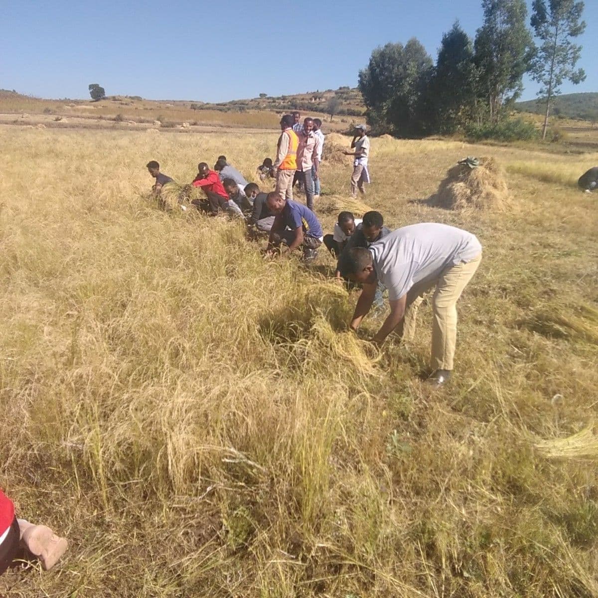 የሁለቱ ተቋማት ሠራተኞች በጎንደር ከተማ ጠዳ ቀበሌ በመገኘት ነው የዘመች ቤተሰቦችን የደረሰ ሰብል የሰበሰቡት፡፡