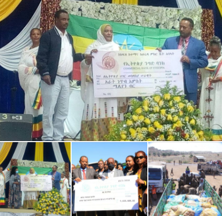 በተጨማሪም “እኔ አለሁ ለወገኔ” በሚል መሪ ሃሳብ የፋሲልና የባህርዳር ከነማ ስፖርት ደጋፊዎች ማህበራት በጋራ በመሆን ከሰሜንና ደቡብ ወሎ ተፈናቅለው ደብረብርሃን ከተማ ለሚገኙ ወገኖች ከ1ነጥብ 8ሚሊየን ብር በላይ ግምታዊ ዋጋ ያላቸው የምግብ ግብዓት አስረክበዋል፡፡