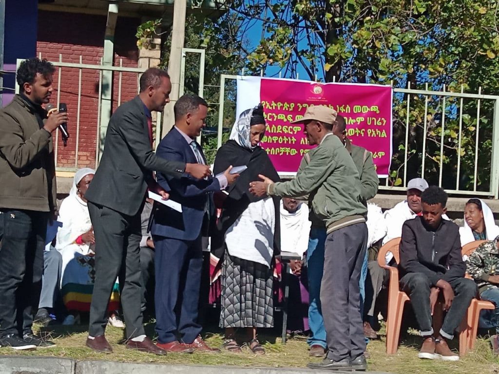 የኢትዮጵያ ንግድ ባንክ ጎንደር ዲስትሪክት ዳይሬክተር አቶ ደመዎዜ ባልቤ፥ ነፋስ መውጫ ከተማ ተገኝተው ድጋፉን ሰጥተዋል።