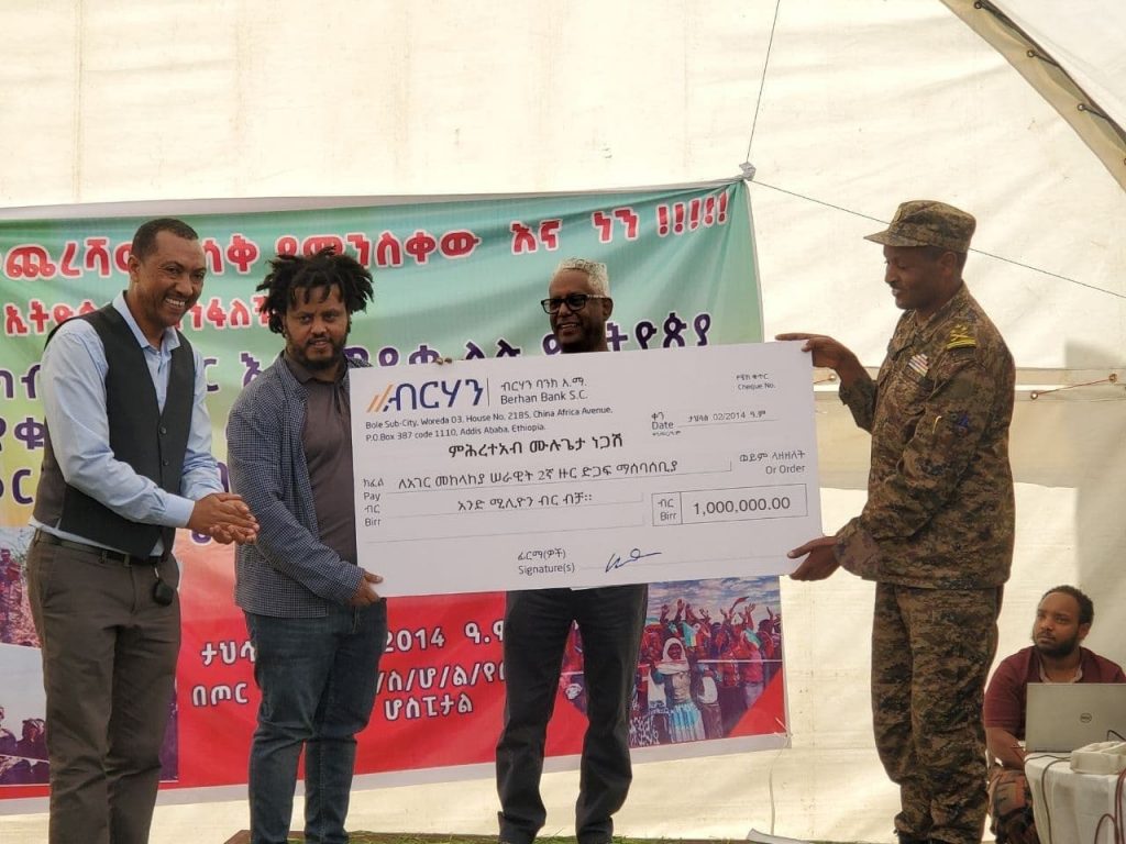 በዚሁ መርሃግብር ወጣት ምህረታብ 1 ሚሊየን ብር ለመከላከያ ሰራዊት ኮሎኔል ጌትነት አዳነም ድጋፉን ተረክበዋል።