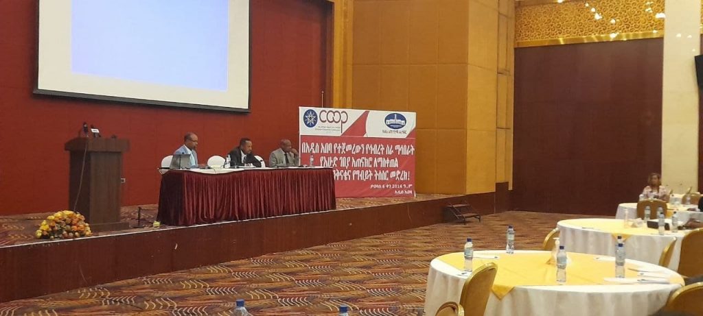 አዲስ አበባ ፣ ታህሳስ 6 ፣ 2014 (ኤፍ ቢ ሲ) በአዲስ አበባ የተጀመረውን የኅብረት ሥራ ማኅበራት የእሁድ ገበያ አጠናክሮ ለማስቀጠል የንቅናቄና የግብይት ትሥሥር መድረክ እየተካሄደ ነው።