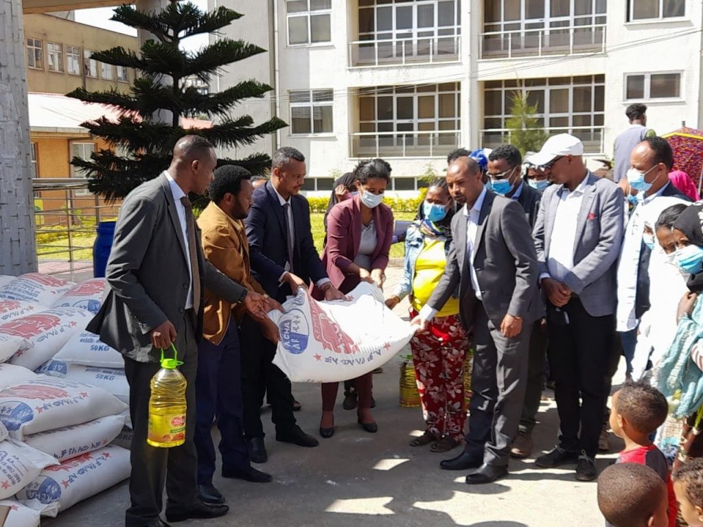 አመራሮቹ በአዲስ አበባ ከሁሉም ክፍለ ከተሞች ለተውጣጡ 220 የዘማች ቤተሰቦች ነው ለእያንዳንዳቸው 50 ኪሎ ግራም ፍርኖ ዱቄትና 5 ሊትር ዘይት ድጋፍ ያደረጉት፡፡