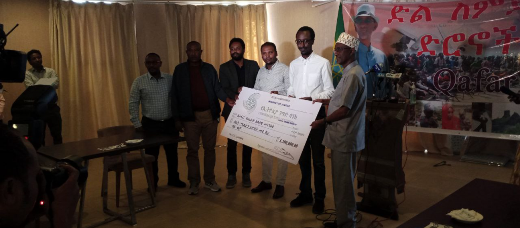 አዲስ አበባ፣ ታህሳስ 9፣ 2014 (ኤፍ ቢ ሲ) የፍትህ ሚኒስቴር እና ማህበራት በአፋር ክልል በአሸባሪው ህወሓት ወረራ ወቅት ጉዳት ለደረሰባቸው ዜጎች የሚውል 3 ነጥብ 5 ሚሊየን ብር እና የዓይነት ድጋፍ ዛሬ በሰመራ በመገኘት ለክልሉ ርዕሰ መሰተዳድር አቶ አወል አርባ አስረክበዋል።