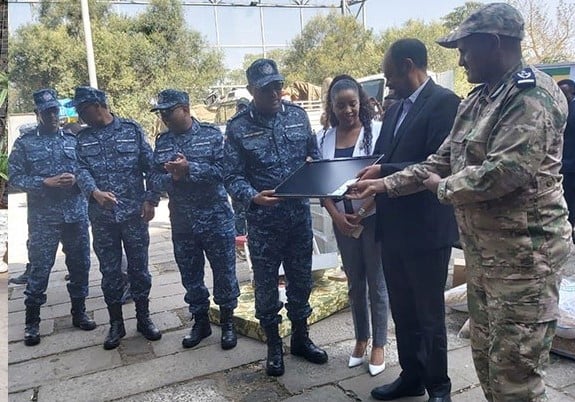 አዲስ አበባ፣ ታህሳስ 11፣ 2014 (ኤፍ ቢ ሲ) የኢትዮጵያ ፌደራል ፖሊስና ኢትዮ-ቴሌኮም በአማራ ክልል በአሸባሪው ህወሃት የወደሙ 178 ፖሊስ ጣቢያዎችን እና አምስት የዞን ፖሊስ መምሪያዎችን መልሶ ለማቋቋም የሚውል የ10 ሚሊየን ብር ግምት ያላቸው ለቢሮ ግብአት የሚውሉ ቁሳቁሶችን ድጋፍ አደረጉ።
