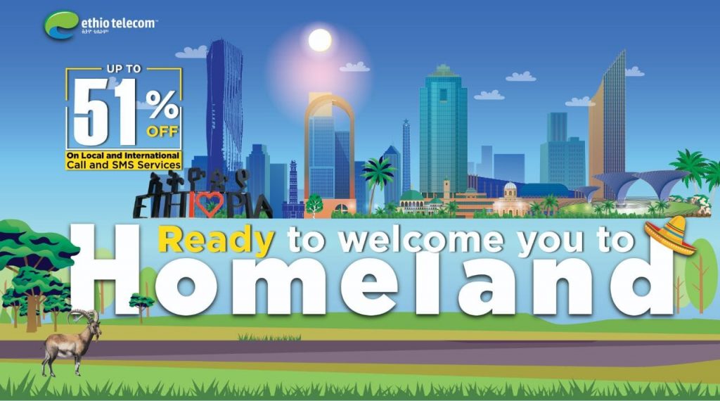 አዲስ አበባ፣ ታህሳስ 11፣ 2014 (ኤፍ ቢ ሲ) ወደ ሀገር ቤት እንግባ ጥሪን ተቀብለው ለሚመጡ ኢትዮጵያውያን እና የኢትዮጵያ ወዳጆች በአገልግሎቱ ላይ እስከ 51 በመቶ ቅናሽ ለማድረግ መዘጋጀቱን ኢትዮ-ቴሌኮም አስታወቀ።