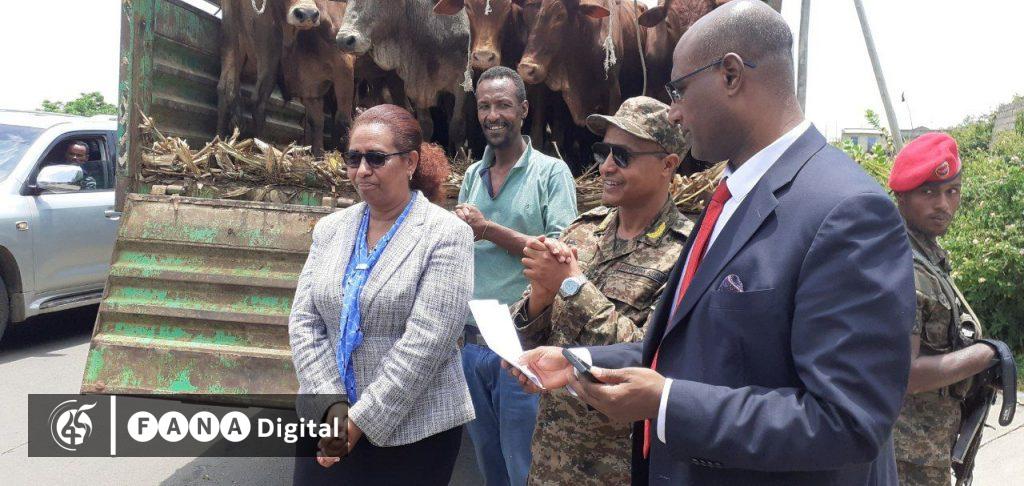 ክልሉ 1 ሺህ 411 ሰንጋ ፣ 1 ሺህ 85 ፍየል ፣ 1 ሺህ 160 በግ በድምሩ 3 ሺህ 656 የእርድ እንስሳት ነው ድጋፍ ያደረገው፡፡