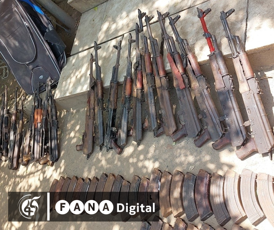 ከተጠርጣሪው ጋር 11 ባለሰደፍ እና ዘጠኝ ታጣፊ በድምሩ 20 ክላሽንኮቭ መያዙን ጠቁመው በተጨማሪ 34 የክላሽንኮቭ ካርታና የተለያዩ የባንክ ደብተሮች፤ ዶክመንቶች በቁጥጥር ስር መዋላቸውን ገልጸዋል።