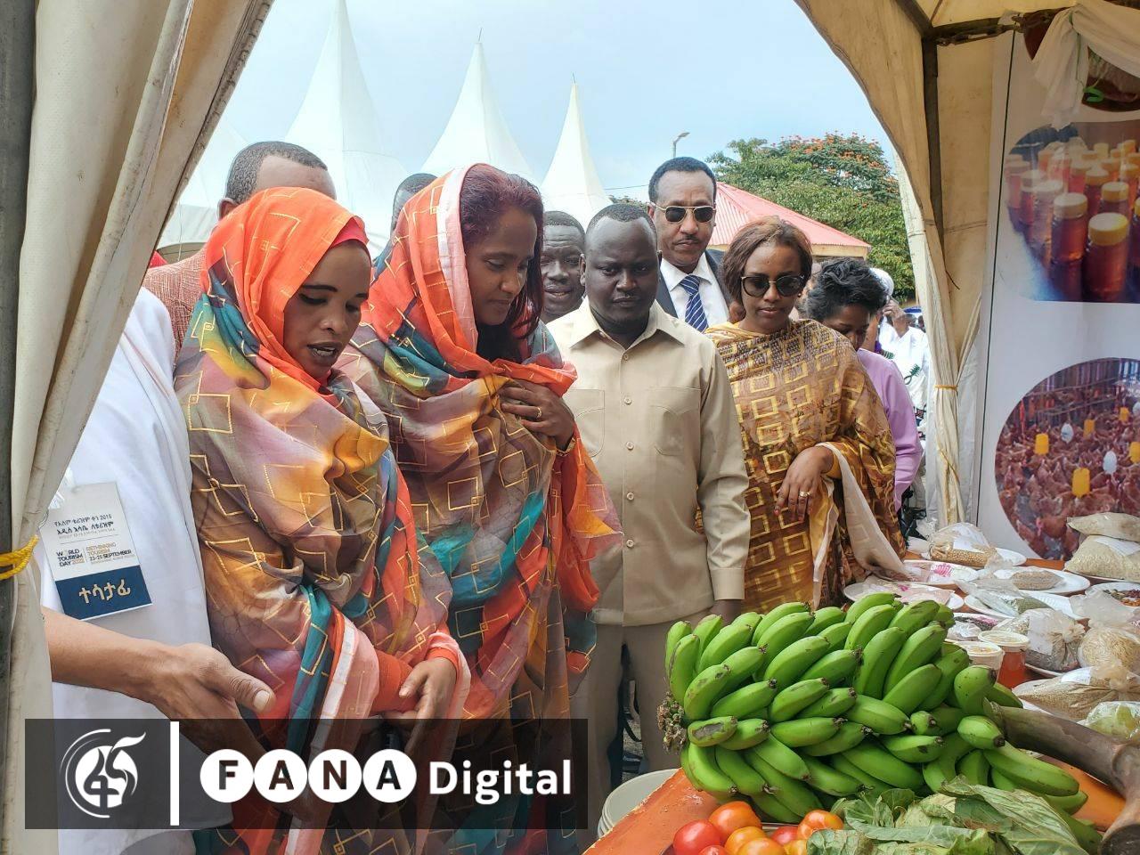 የኢፌዴሪ የቱሪዝም ሚኒስትር አምባሳደር ናሲሴ ጫሊ እና የቤኒሻንጉል ጉሙዝ ክልል ርዕሰ መስተዳደር አሻድሊ ሀሰን ዐውደርዕዩን መርቀው ከፍተዋል።