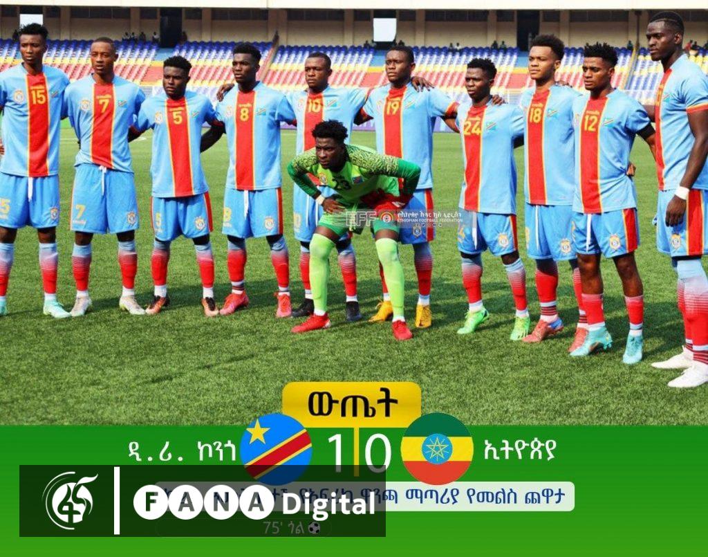 አዲስ አበባ፣ መስከረም 17፣ 2015 (ኤፍ ቢ ሲ) ከ23 ዓመት በታች የአፍሪካ ዋንጫ ማጣሪያ የመልስ ጨዋታውን ከዲሞክራቲክ ሪፐብሊክ ኮንጎ ጋር ያደረገው የኢትዮጵያ ብሔራዊ ቡድን 1ለ 0 ተሸንፏል፡፡