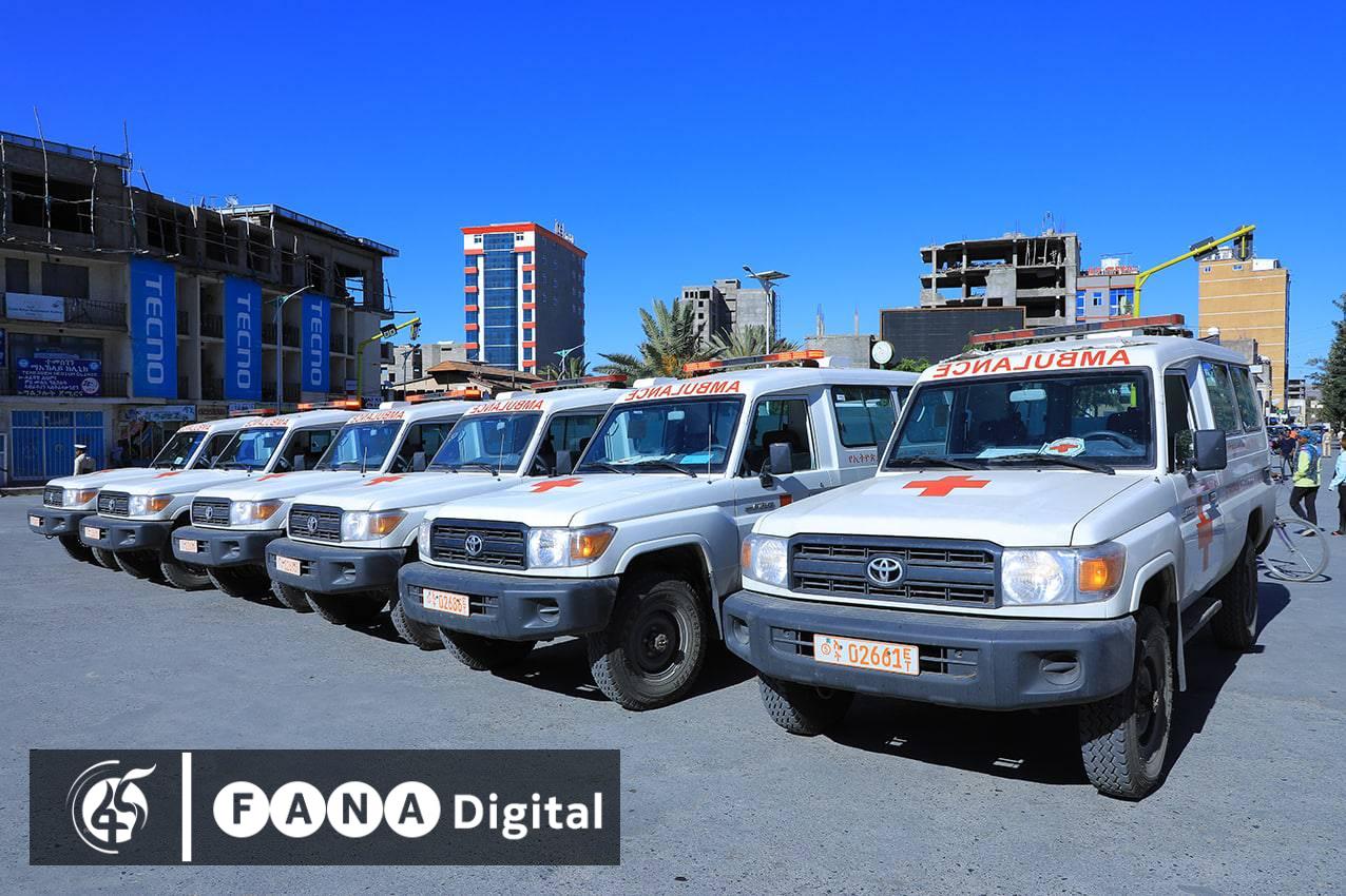 አዲስ አበባ፣ ታኅሣሥ 30፣ 2015 (ኤፍ ቢ ሲ) የኢትዮጵያ ቀይ መስቀል ማኅበር አሥር አምቡላንሶችና አምስት ቀላል ተሽከርካሪዎችን ለማኅበሩ ትግራይ ክልል ቅርንጫፍ ጽሕፈት ቤት አስረከበ፡፡