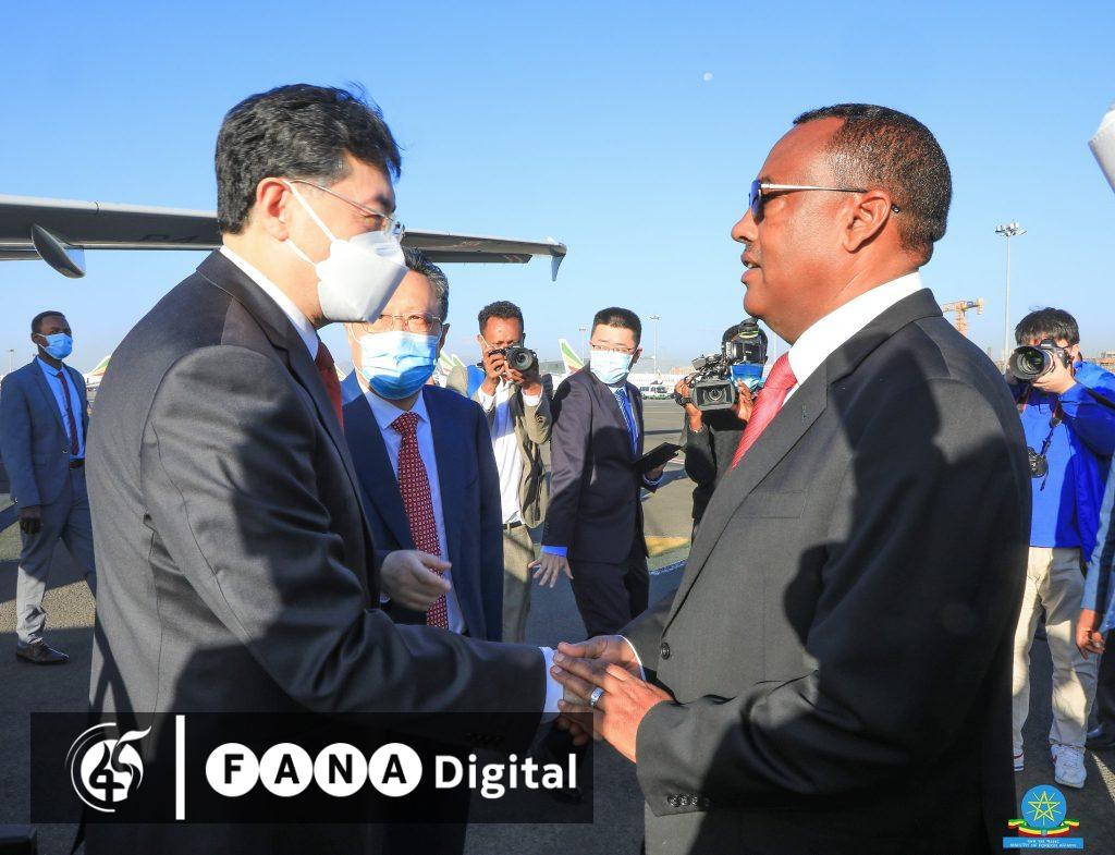 ቺን ጋንግ ቦሌ ዓለም አቀፍ አውሮፕላን ማረፊያ ሲደርሱ÷ ምክትል ጠቅላይ ሚኒስትርና የውጭ ጉዳይ ሚኒስትር ደመቀ መኮንን እና ከፍተኛ የሥራ ኃላፊዎች አቀባበል አድርገውላቸዋል።