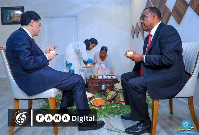 ምክትል ጠቅላይ ሚኒስትር እና የውጭ ጉዳይ ሚኒስትር ደመቀ መኮንን በኢትዮጵያ ይፋዊ የሥራ ጉብኝት እያደረጉ ከሚገኙት ከቻይና የውጭ ጉዳይ ሚኒስትር ቺን ጋንግ ጋር በጽህፈት ቤታቸው ተወያይተዋል።