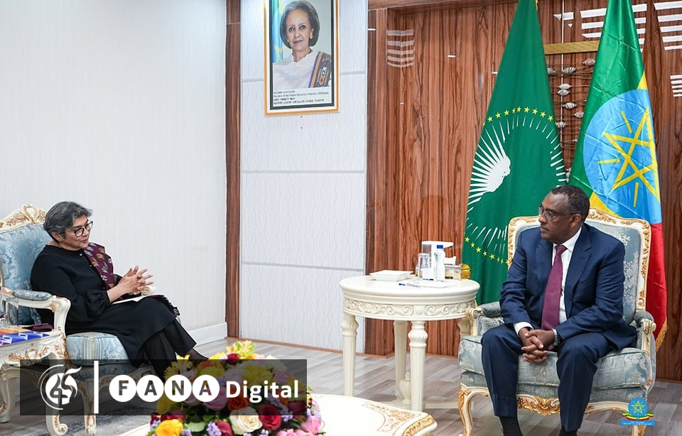 አዲስ አበባ፣ ጥር 10፣ 2015 (ኤፍ ቢ ሲ) ምክትል ጠቅላይ ሚኒስትር እና የውጭ ጉዳይ ሚኒስትር ደመቀ መኮንን ከተመድ ከፍተኛ ተወካይ አምባሳደር ራባብ ፋጢማ ጋር በጽህፈት ቤታቸው ተወያዩ፡፡