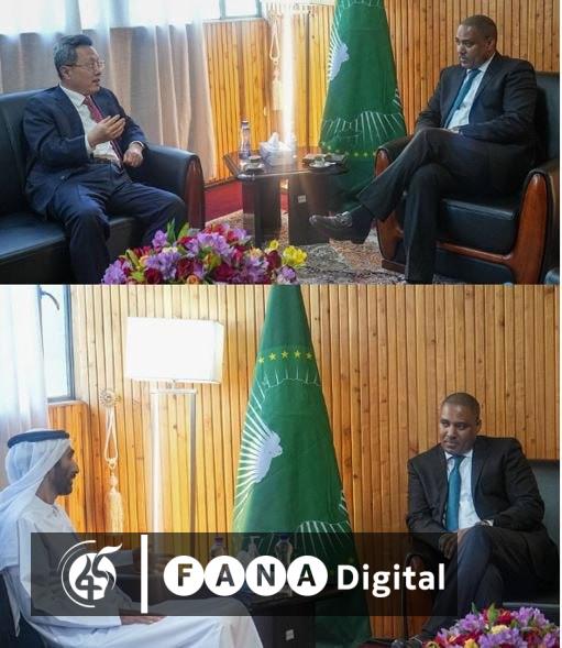 አዲስ አበባ ፣ ጥር 22 ፣ 2015 (ኤፍ ቢ ሲ) የውጭ ጉዳይ ሚኒስትር ዴኤታ አምባሳደር ምስጋኑ አርጋ በኢትዮጵያ ከቻይና አምባሳደር ዣኦ ዡዩአን እና ከተባበሩት ዓረብ ኤሚሬቶች አምባሳደር መሀመድ ሳሊም አል ራሺዲ ጋር ተወያይተዋል፡፡