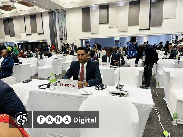 አዲስ አበባ ፣ የካቲት 4 ፣ 2015 (ኤፍ ቢ ሲ) በንግድና ቀጠናዊ ትስስር ሚኒስትር ዴኤታ ካሳሁን ጎፌ የተመራ ልዑክ በቦትስዋና ጋቦሮኒ እየተካሄደ በሚገኘው 11ኛው የአፍሪካ አህጉራዊ ነፃ ንግድ ቀጠና የሚኒስትሮች ምክር ቤት ስብሰባ ላይ እየተካፈለ ነው።
