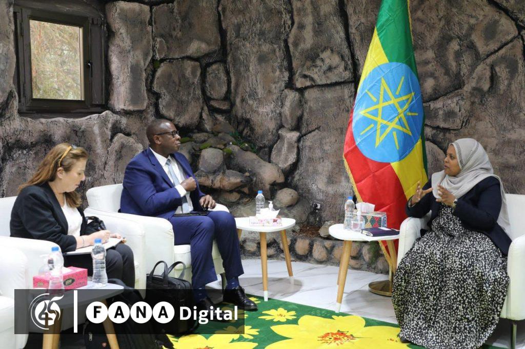 አዲስ አበባ፣ የካቲት 9፣ 2015 (ኤፍ ቢ ሲ) የሥራና ክህሎት ሚኒስትር ወይዘሮ ሙፈሪሃት ካሚል ከአፍሪካ ልማት ባንክ ምክትል ፕሬዚዳንት ሶሎሞን ኳይኖር ጋር ተወያዩ፡፡
