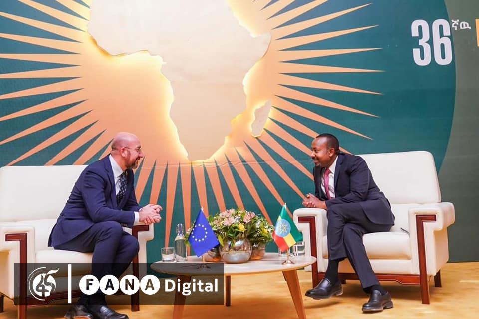 አዲስ አበባ፣ የካቲት 12፣ 2015 (ኤፍ ቢ ሲ)ጠቅላይ ሚኒስትር ዐቢይ አሕመድ ከአውሮፓ ህብረት ምክር ቤት ፕሬዚዳንት ቻርለስ ሚሼል ጋር ተወያዩ፡፡