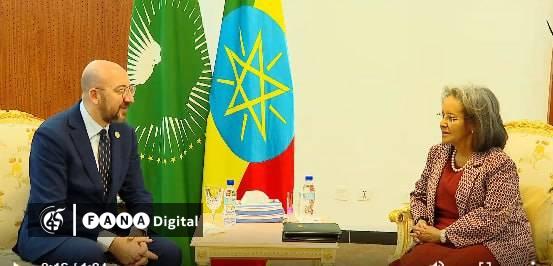 አዲስ አበባ፣ የካቲት 12፣ 2015 (ኤፍ ቢ ሲ)ፕሬዚዳንት ሳህለወርቅ ዘውዴ ከአውሮፓ ህብረት ምክር ቤት ፕሬዚዳንት ቻርልስ ሚሼል ጋር ህብረቱ ከኢትዮጵያ ጋር ያለውን ግንኙነት ማጠናከር በሚቻልበት ሁኔታ ላይ ተወያይተዋል።