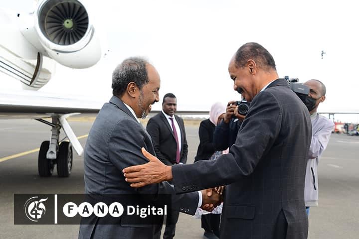 ፕሬዚዳንት ሐሰን ሼክ ሞሃሙድ በአስመራ ቆይታቸው ከፕሬዚዳንት ኢሳያስ አፈወርቂ ጋር በሁለትዮሽ እና ቀጠናዊ ጉዳዮች ዙሪያ እንደሚመክሩ ይጠበቃል፡፡