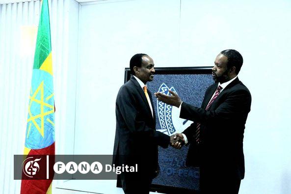 አዲስ አበባ፣ መጋቢት 9፣ 2015 (ኤፍ ቢ ሲ) የኢፌዴሪ ብሄራዊ የተሀድሶ ኮሚሽን ኮሚሽነር አምባሳደር ተሾመ ቶጋ ከዓለም አቀፉ ፍልሰተኞች ድርጅት (አይ ኦ ኤም) የምስራቅ አፍሪካና የአፍሪካ ቀንድ ተጠሪ መሀመድ አብዲከር ጋር በተሀድሶ ኮሚሽን ጉዳዮች ላይ ምክክር አካሄዱ።