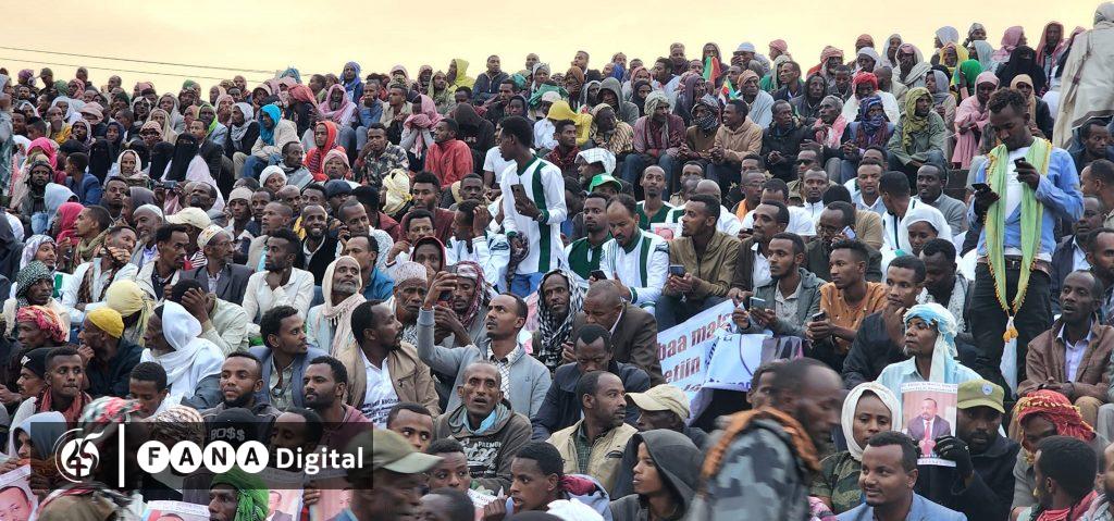 የድጋፍ ሰልፉ ተሳታፊዎች ከለውጡ በኋላ ባለፉት አምስት ዓመታት በክልሉ በፖለቲካ፣ በኢኮኖሚ፣ በማሕበራዊና በሌሎች ዘርፎች የተመዘገቡ ለውጦችን የሚያስተጋቡ መፈክሮችን በማሰማት ላይ ይገኛሉ፡፡