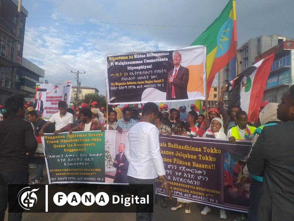 አዲስ አበባ፣ መጋቢት 24፣ 2015 (ኤፍ ቢ ሲ) በኦሮሚያ ክልል ሸገር ከተማ ከለውጡ በኋላ የተገኘውን ድልና ስኬት ለማስቀጠል ያለመ የድጋፍ ሰልፍ እየተካሄደ ነው፡፡
