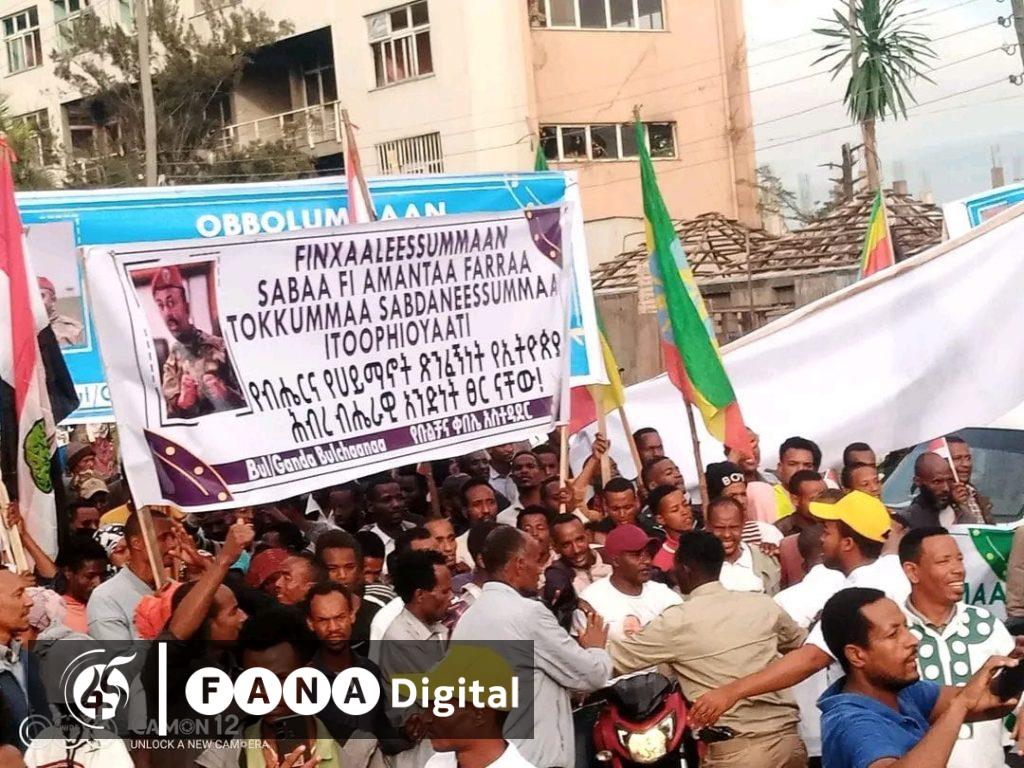 ከለውጡ በኋላ ባለፉት 5 ዓመታት በክልሉ በፖለቲካ፣ በኢኮኖሚ፣ በማሕበራዊና በሌሎች ዘርፎች የተመዘገቡ ለውጦችን የሚያሳዩ መፈክሮችንም በማሰማት ላይ ናቸው፡፡