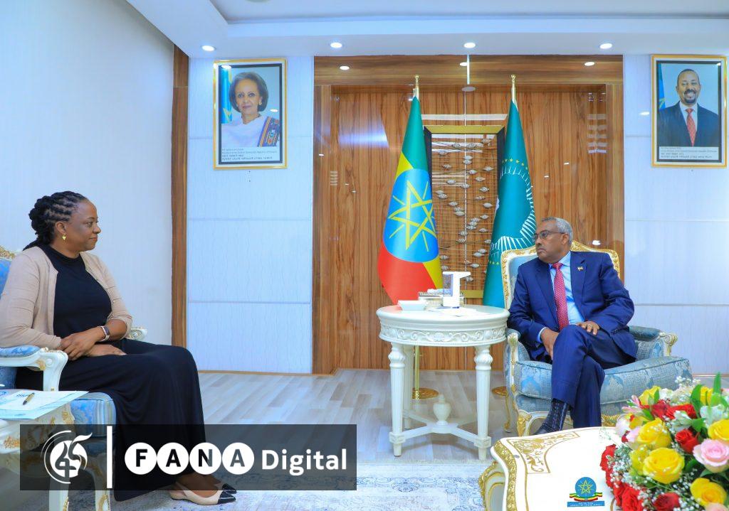 አዲስ አበባ ፣ መጋቢት 26 ፣ 2015 (ኤፍ ቢ ሲ) ምክትል ጠቅላይ ሚኒስትር እና የውጭ ጉዳይ ሚኒስትር ደመቀ መኮንን በተባበሩት መንግስታት ድርጅት የኢትዮጵያ ሰብዓዊ እርዳታ አስተባባሪ ካትሪን ሶዚ ጋር ተወያይተዋል።